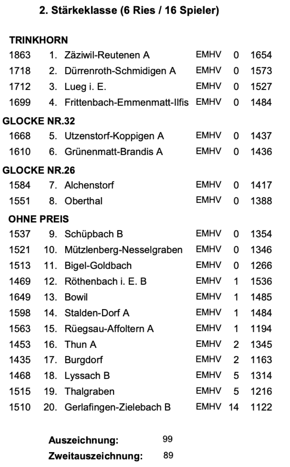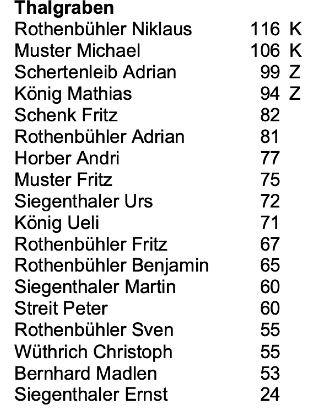 HG Thalgraben 0 Nr. / 785 Punkte - HG Wyssachen 2 Nr. / 794 Punkte