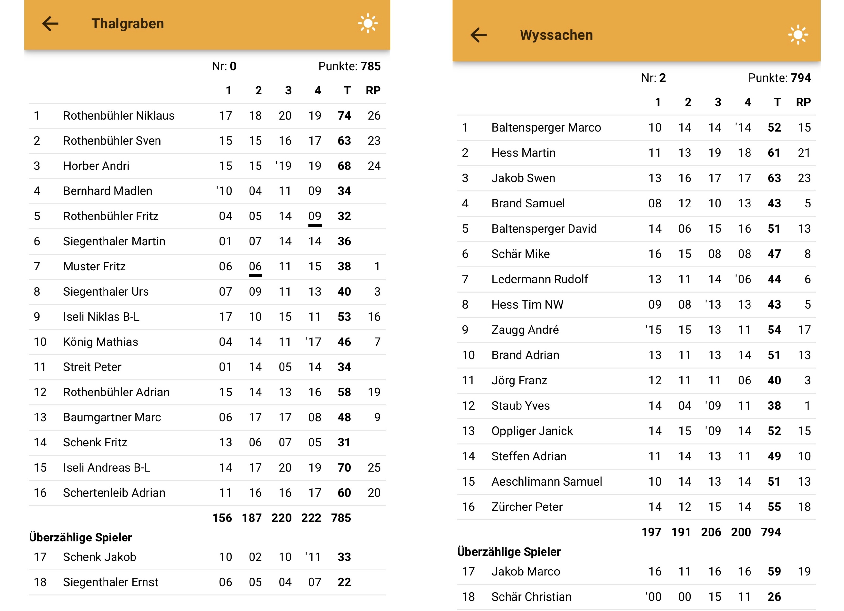 HG Thalgraben 0 Nr. / 785 Punkte - HG Wyssachen 2 Nr. / 794 Punkte